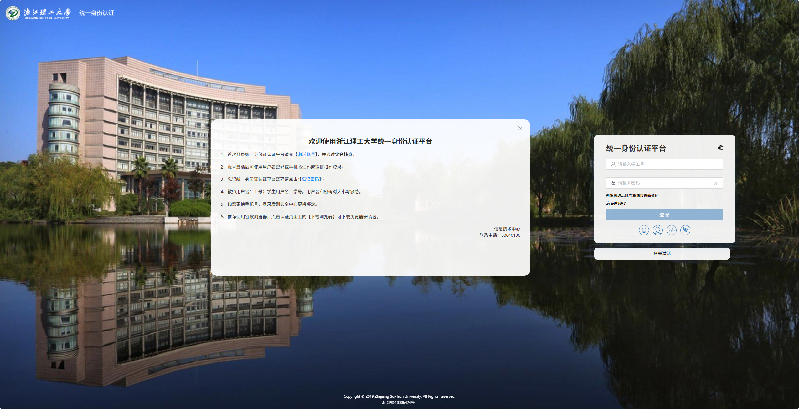 校统一身份认证登录网址:https://sso.zstu.edu.cn/login,移动端可扫码登陆: